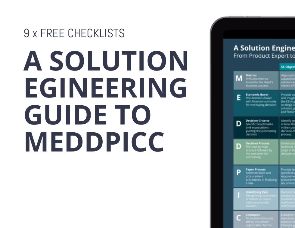 MEDDPICC is often seen as a sales qualification tool, but for Solution Engineers it can be much more. When SEs use MEDDPICC properly, it becomes a framework that helps them understand customers better, run stronger conversations, and make their demos more relevant.